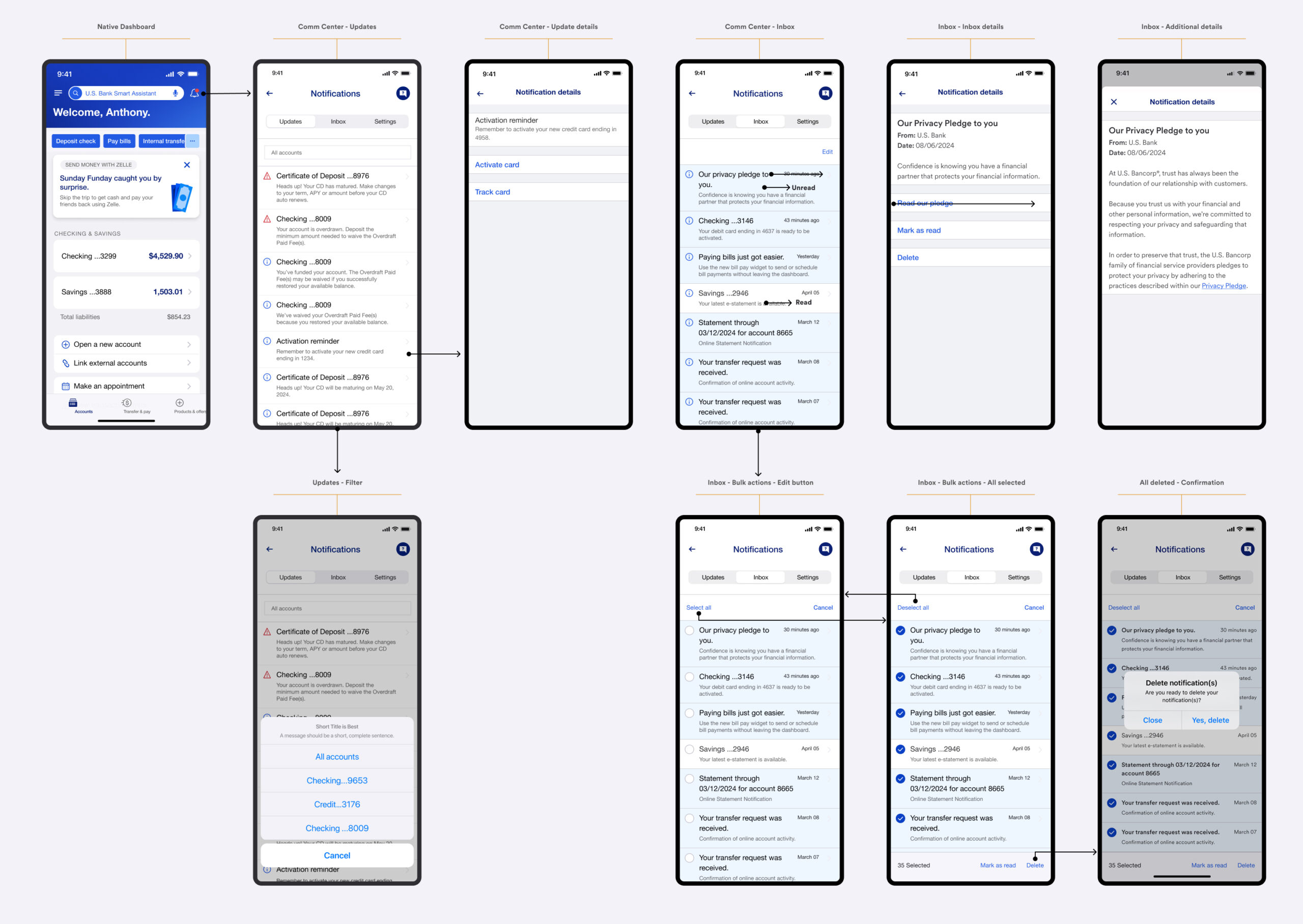 By setting these standards early, we ensured that future iterations of the notification center would remain user-friendly, scalable, and aligned with US Bank’s communication strategy.