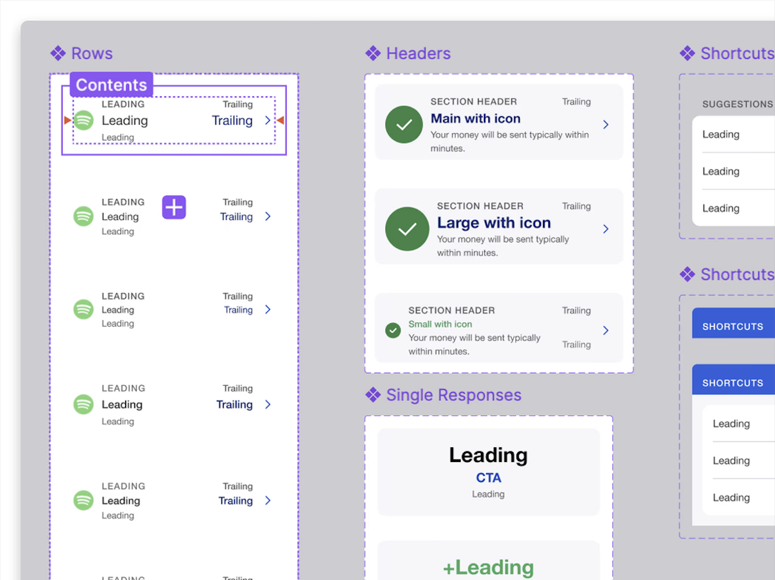 To address repeated components and inconsistencies, we introduced Smart Components—a modular, reusable system designed for flexibility and efficiency. These components allow designers and developers to toggle layers on and off, creating new elements without starting from scratch while maintaining consistency across platforms such as iOS, Android, and the web.