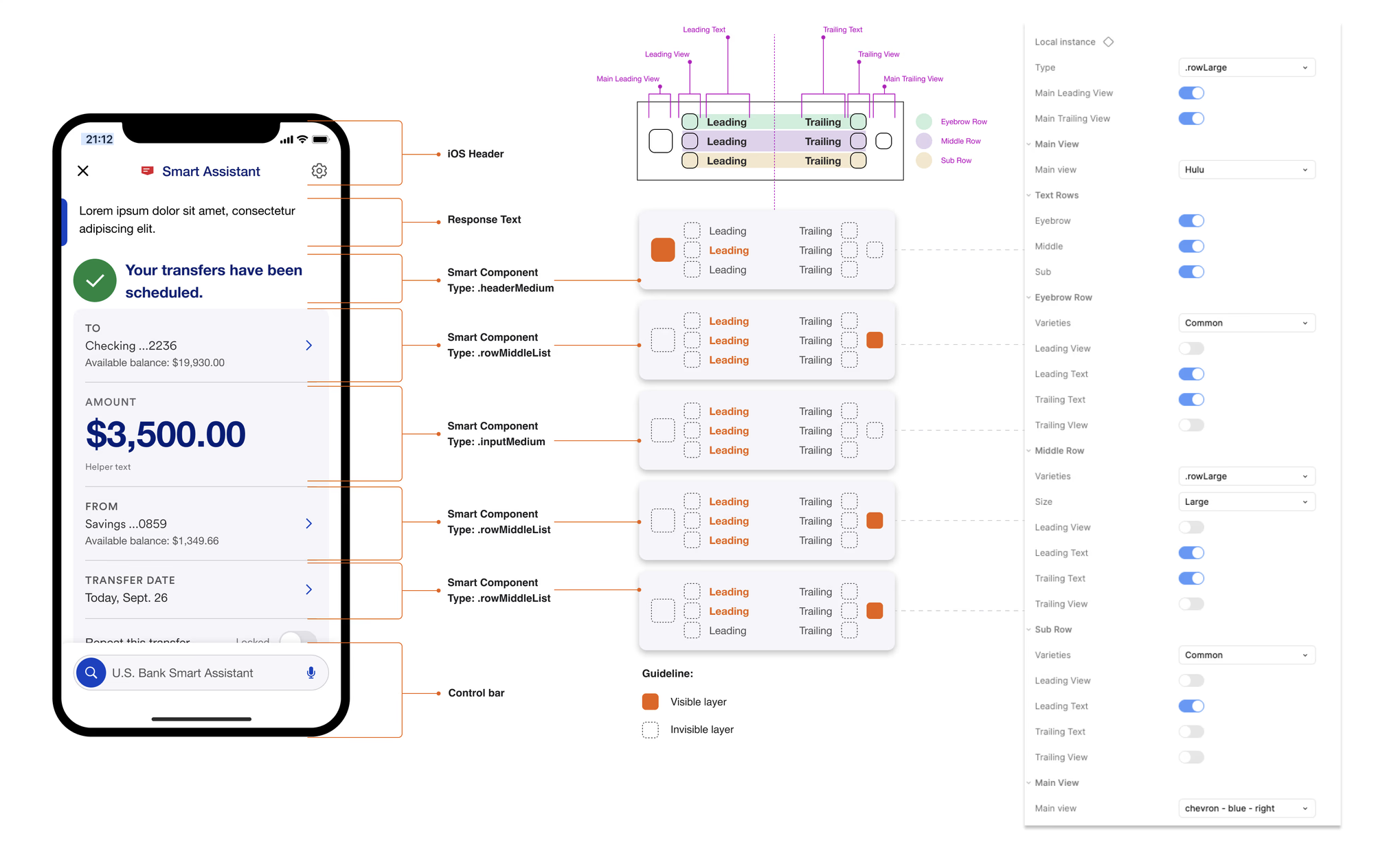 With the Smart Components system in place across all platforms, we created customizable templates and screens for both native and responsive web. These core screens and flows are ready for teams to grab and build on for various competencies. By using toggles within components, teams can turn elements on or off, making them flexible and adaptable. Each screen is structured like a template for Smart Assistant responses, making it seamless to build new features as long as everything is annotated with the correct naming conventions and content. This approach ensures efficiency and consistency in development across platforms.