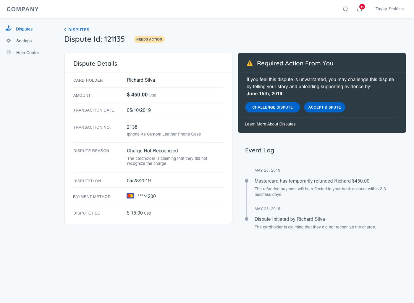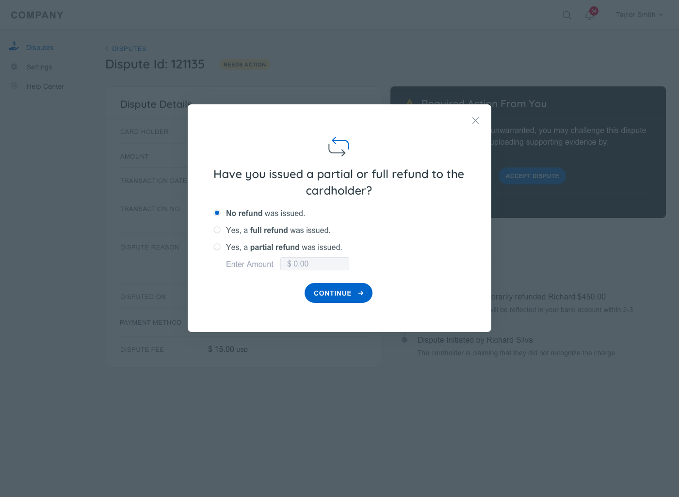 Our goal was to create a seamless, self-service experience that empowers customers with the knowledge and tools they need to manage disputes effectively.