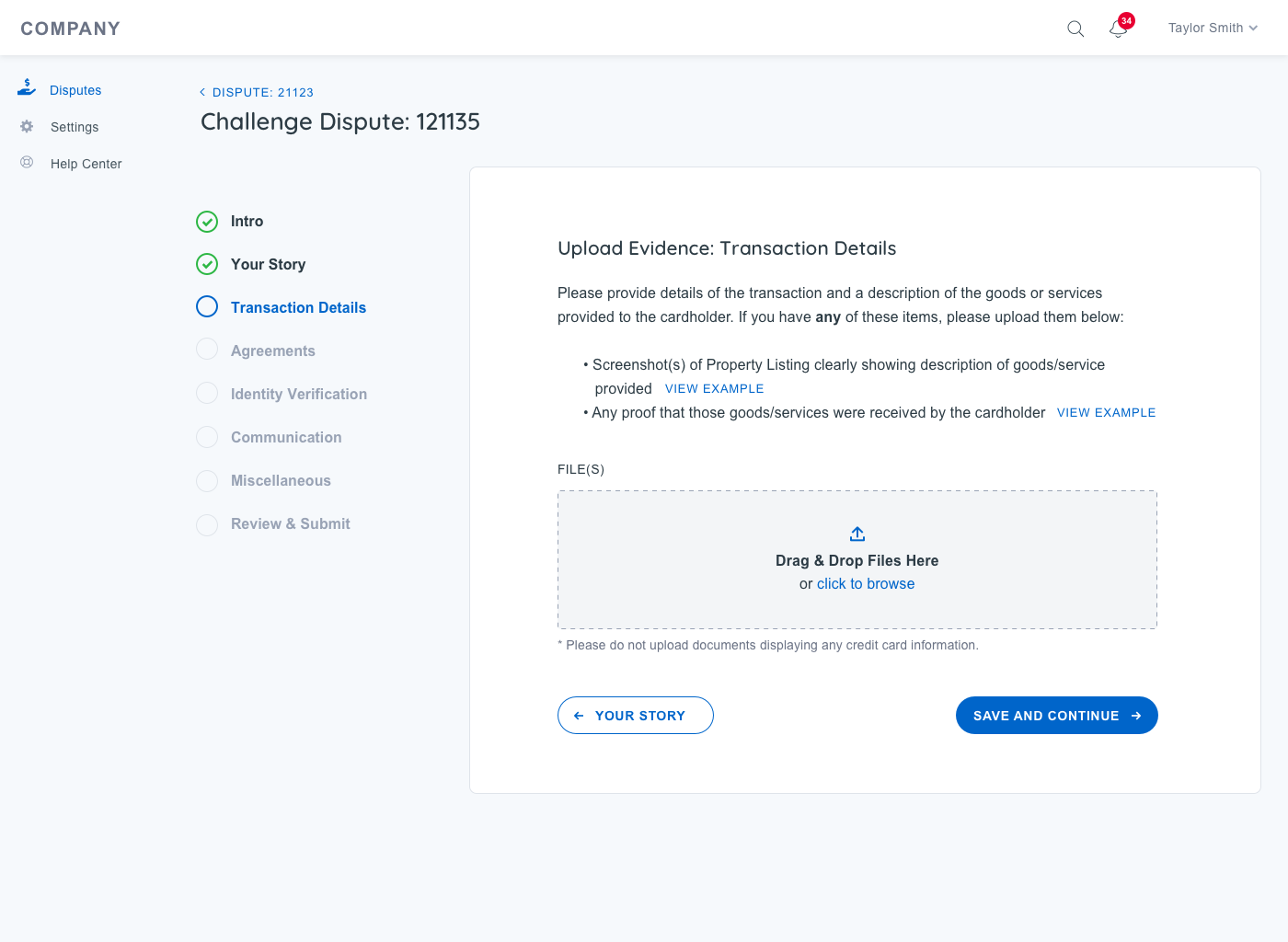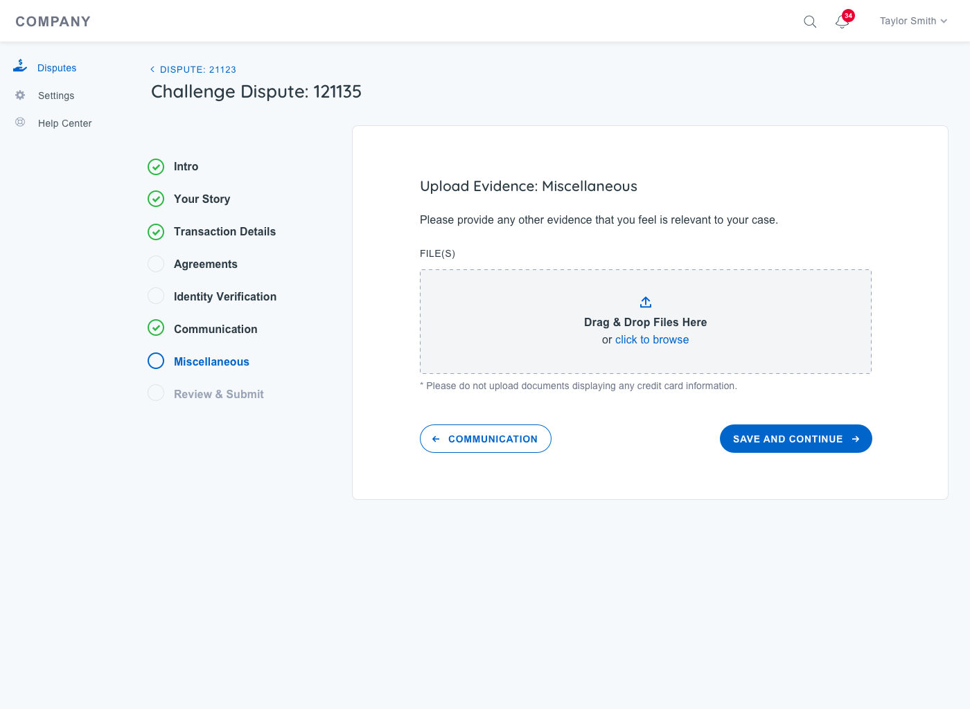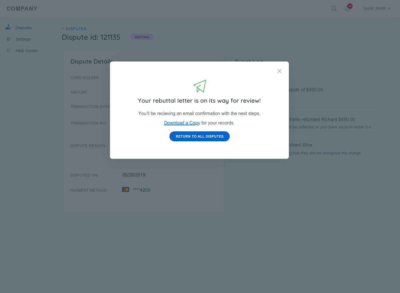 Enable Action: Allow customers to take necessary actions on new disputes, including submitting documentation and responding directly within the system.