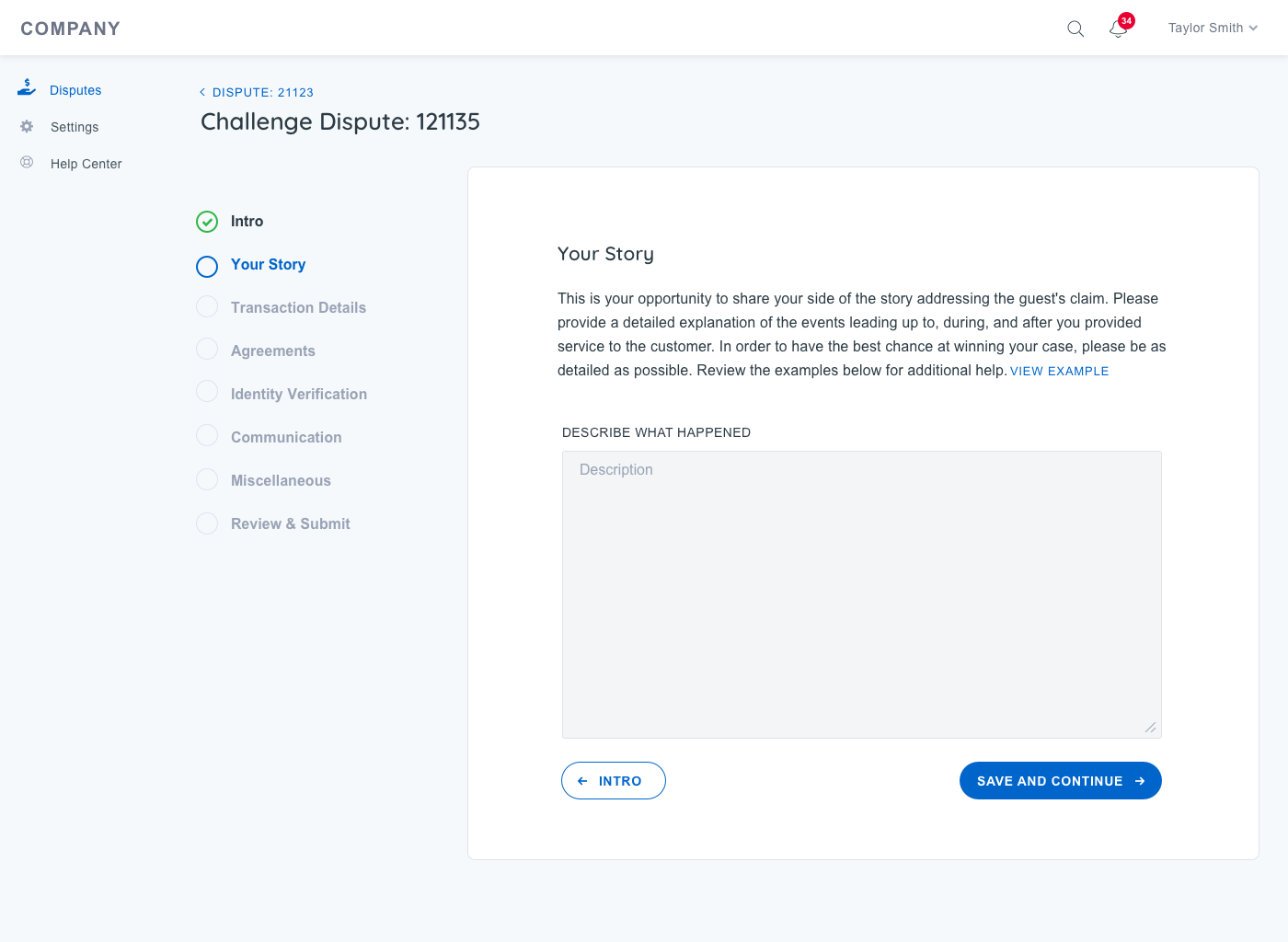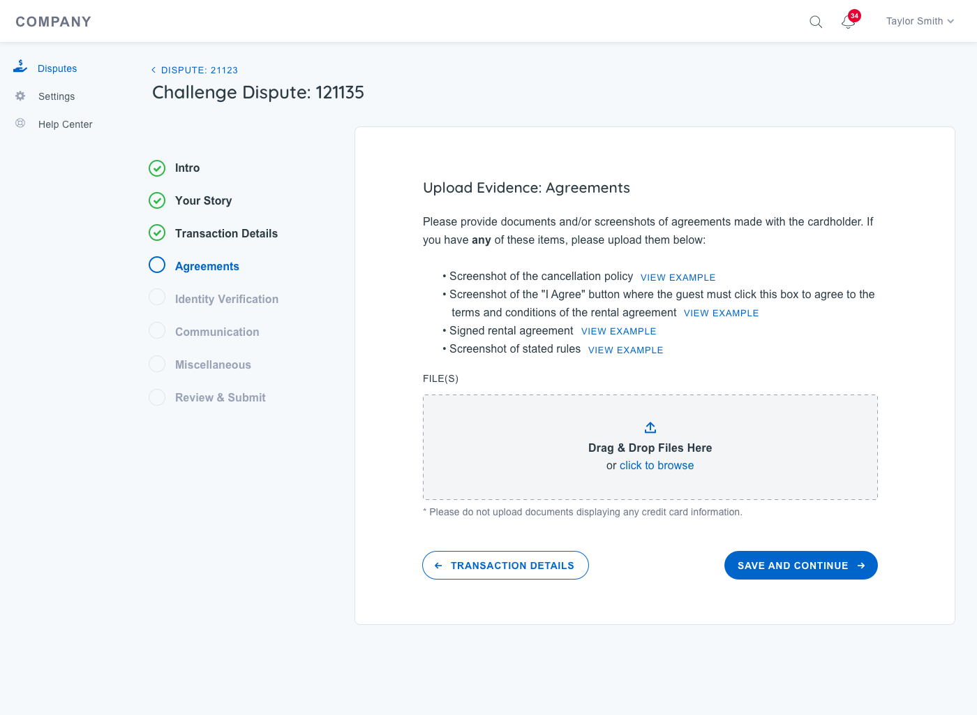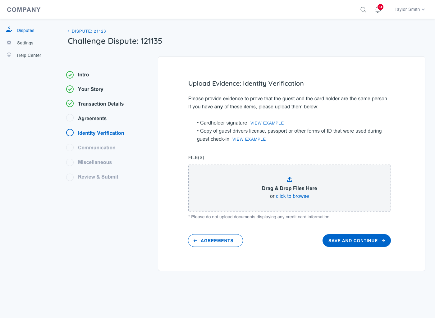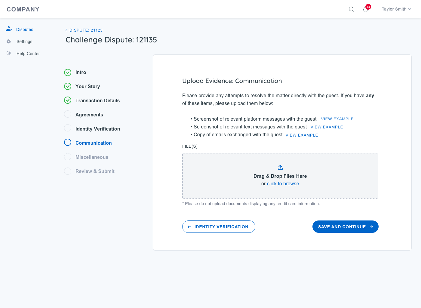 Enable Action: Allow customers to take necessary actions on new disputes, including submitting documentation and responding directly within the system.